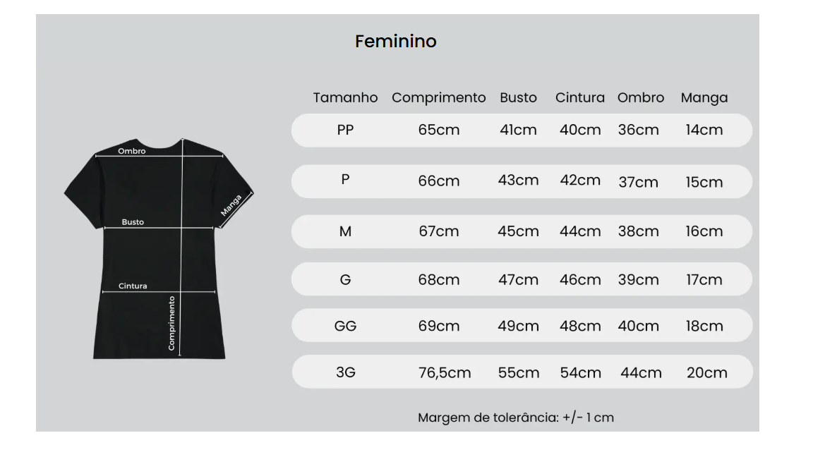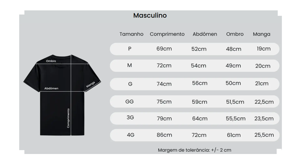 Medidas das nossas camisetas: